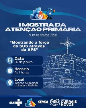 A Secretaria Municipal de Saúde de Currais Novos, por meio da Coordenação da Atenção Primária irá realizar no dia 29 de janeiro de 2026 a I Mostra da Atenção Primária de Currais Novos, com
